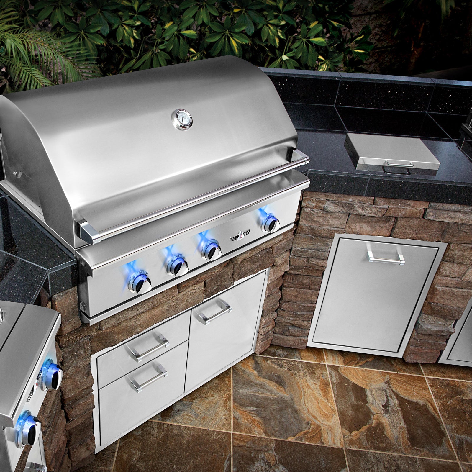 With both built in and modular outdoor appliance units available, we have the products needed to transform your backyard kitchen area. The addition of durable cabinets, drawers, refrigerators, paper towels holders and more, our selection of outdoor appliances will create an inviting space that allows for optimal cooking and serving.