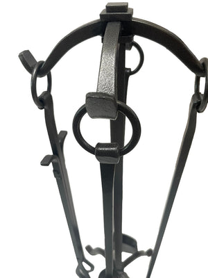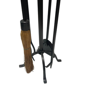 5 Piece Fireplace Tool Set, Natural Wrought Iron.Square rods with a four-leg base and yoke tool holder.Rice broom to clean your ashes.Poker to poke your fire.Shovel to pick up your ashes.3-way tong to grab your logs.Round hook handles.Use with fireplaces, wood stoves and outdoor fire pits