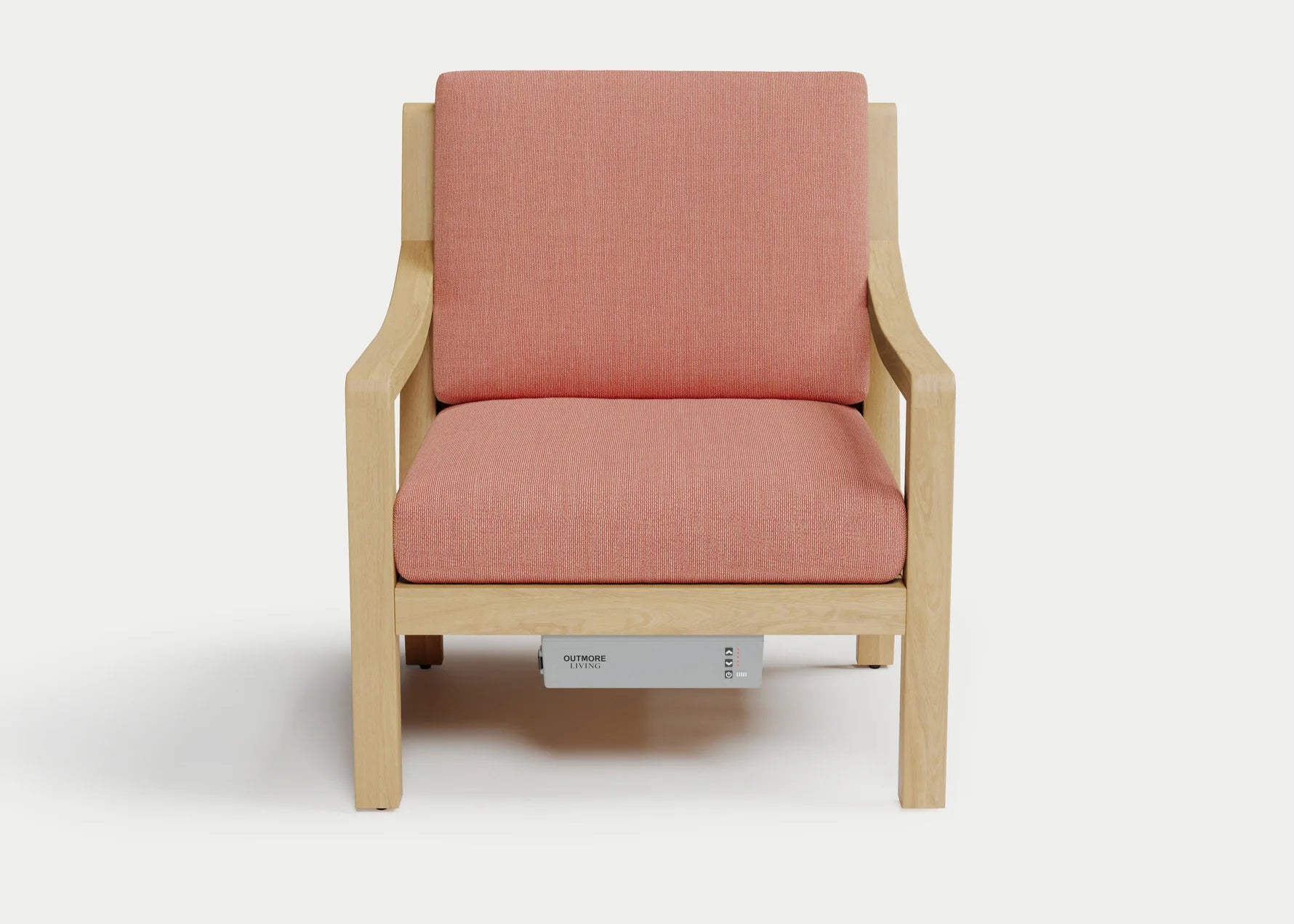 Experience luxury heated outdoor furniture with our Solerno Heated Lounge Chair. Premium FSC-certified teak and Sunbrella® fabric combined with cordless, battery-powered heating technology for year-round enjoyment on your patio, deck, or backyard. Delivered in 2-3 weeks.